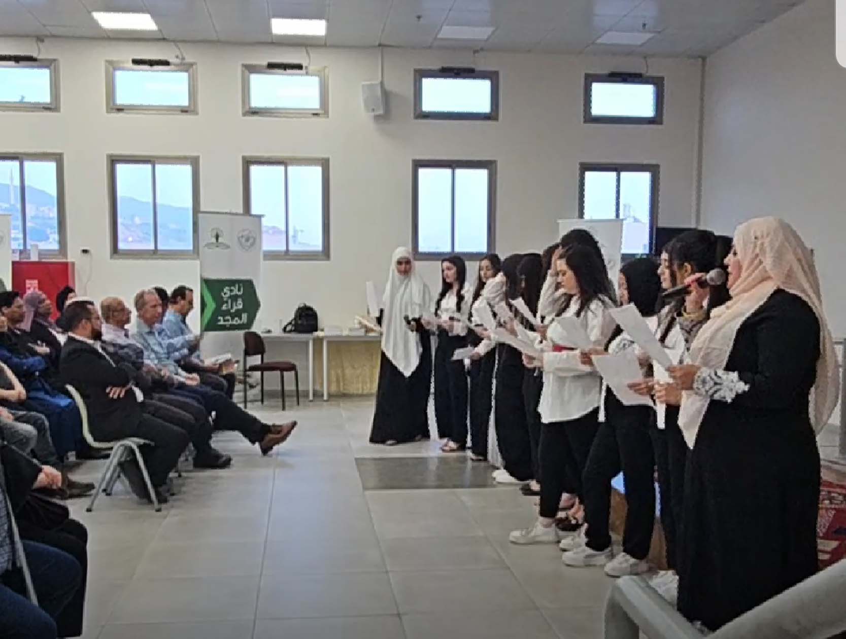 احتضنت أمس الخميس قاعة المكتبة العامة في مجد الكروم حفل تخرّج طالبات ثانوية الشاغور من دورة الكتابة الإبداعية، والتي قامت “الأديبة د. عايدة هنداوي مغربي”، بتعليمها للطالبات خلال سنتين (2023 و 2024). وقد شارك في الحفل مدير المكتبة العامة السيد أبو هالي مناع، مدير المدرسة الثانوية المربي نايف فرحات، مدير قسم وحدة الشبيبة ومدير مركز إنطلاقة وبرنامج تحديات السيد بلال كيوان، معلمون ومعلمات مدرسة الشاغور الثانوية، مجموعة راقية ومميزة من الادباء والكتاب والشعراء. وقسم من الأدباء الضيوف الذين استضافتهم مركّزة الدورة د. عايدة مغربي خلال جزء من لقاءات الدورة وهم: سهيل كيوان، أسمهان خلايلة، علي هيبي، مأمون كبها، ونظير شمالي. الطالبات المبدعات وذويهم، السيدة زهرة خطيب عن مجموعة زهرة الأمل، المركزة الجماهيرية إيناس منصور، وكاميرا اخبار المجد، هذا وقد تخلل الحفل، كلمة مدير المكتبة العامة ابو هالي مناع، كلمة مركّزة الدورة د. عايدة هنداوي مغربي، عرض فيديوهين عن فعاليات ونشاطات الدورة لسنة 2023 و 2024. إلقاء قصيدة مشتركة بعنوان “همسات براعم المجد في المرافئ” كتبتها د. عايدة هنداوي مغربي وطالباتها المبدعات خلال لقاءات الدورة، إلقاء قصائد وخواطر وومضات قصصية من إبداع طالبات الدورة، الإعلان عن الفائز بمسابقة الإبداع برعاية جمعية زهرة الأمل والتي فازت بها الطالبة “أديان كريم”، كلمات الداعمون للمشروع: مدير ثانوية الشاغور نايف فرحات، المربية سمر فاعور مركزة التداخل الاجتماعي في المدرسة، السيد بلال كيوان، تكريم الأدباء الضيوف، كلمة الأديب مأمون كبها ممثلًا عن الادباء، وفقرة شعرية من الشاعر علي هيبي. توزيع شهادات التقدير على الطلاب، وتوزيع كتاب الدورة “همسات براعم المجد في المرافئ” على الطالبات والأدباء والحضور.
