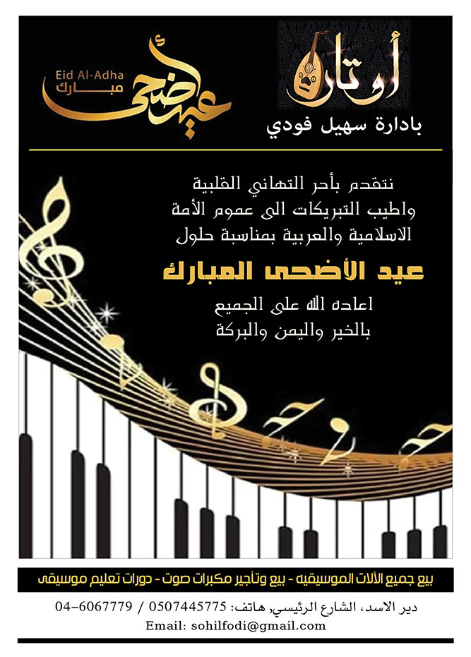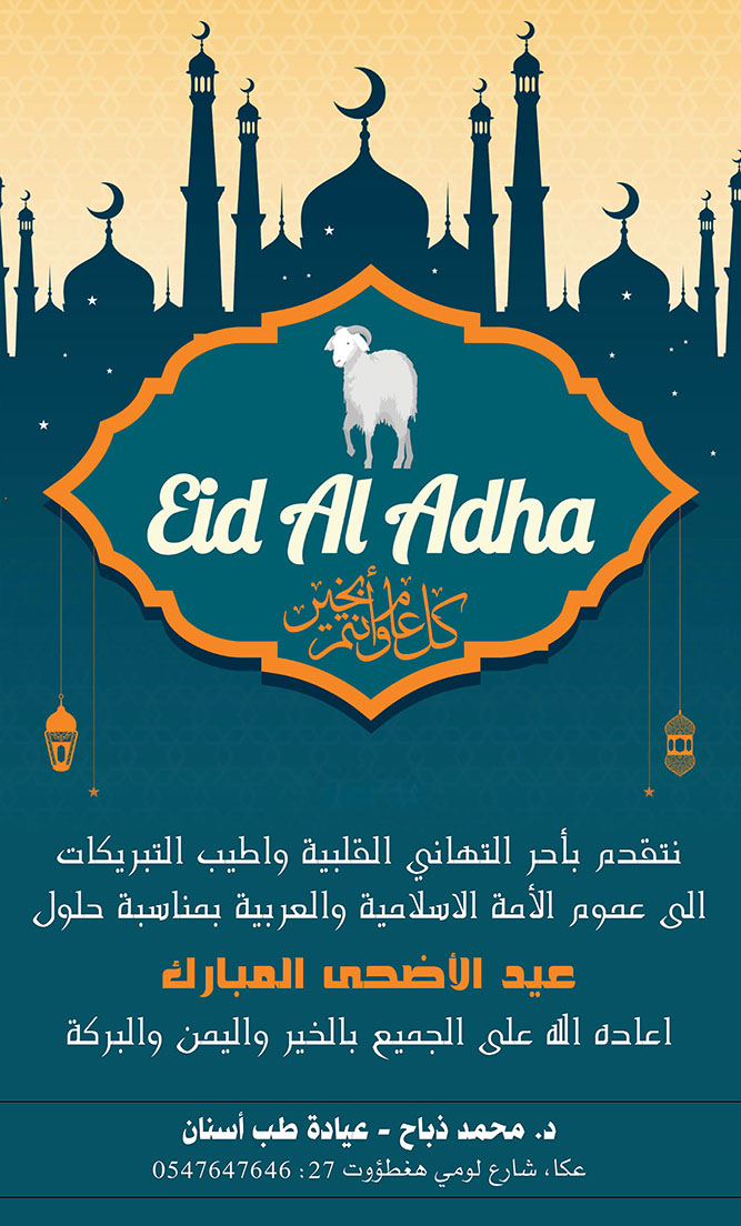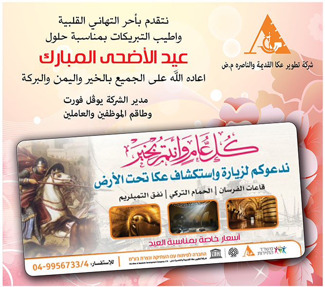 عكا… المؤسسات، المصالح والمحلات التجاريه في عكا والمنطقه يهنئون بعيد الاضحى المبارك