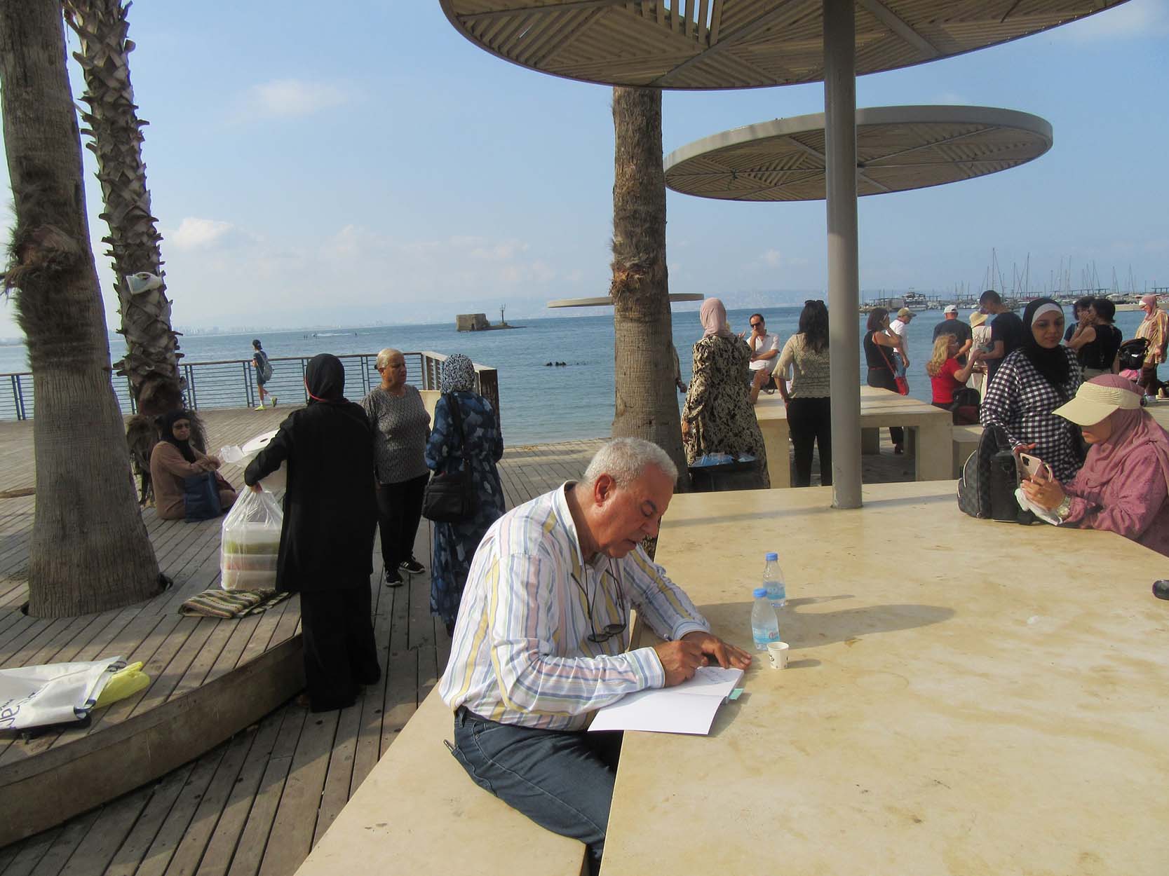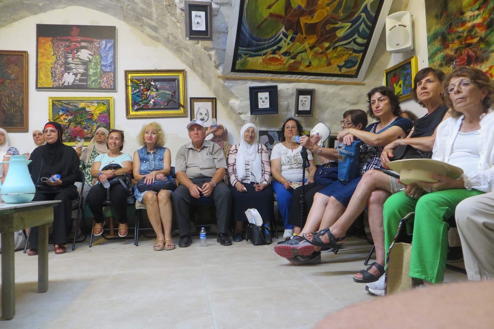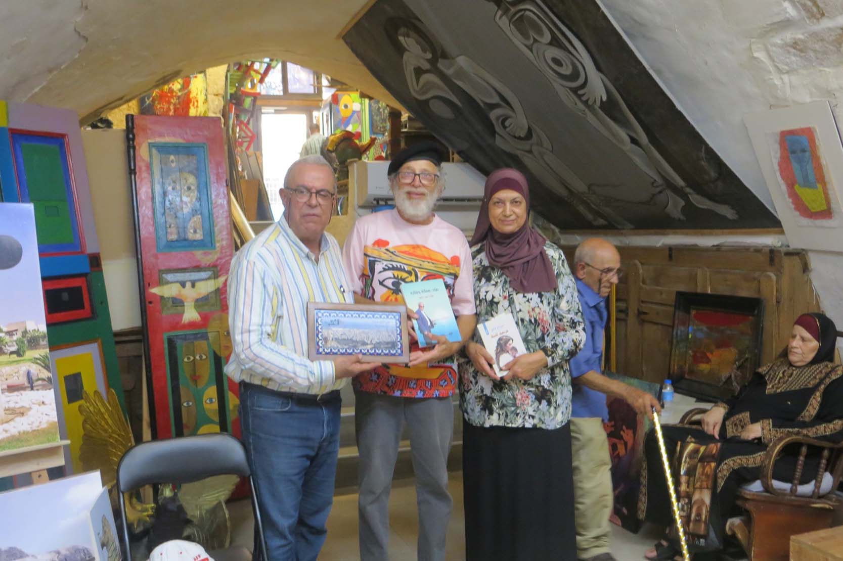 في الواحدة والنّصف ظهرا، استقبل الفنّان المعروف وليد قشّاش وزوجته منى المجموعة في مرسمه، حيث كرّمته إدارة النّادي بدرع “عشق الوطن يجمعنا”، تقديرا لإسهاماته الفنّيّة القيّمة.