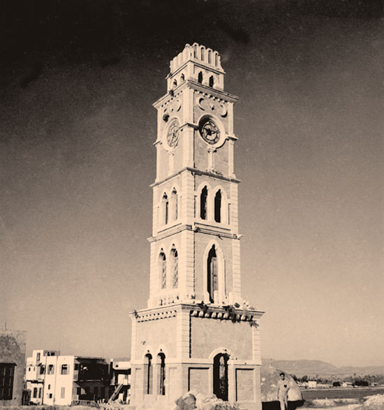 عكا: صوره قديمة لبرج الساعة فوق مدخل خان العمدان بالبلدة القديمة