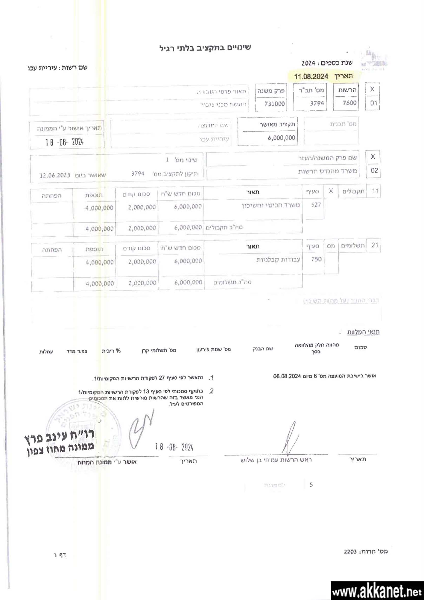 - استكمال الميزانية:بعد الانتهاء من الانتخابات قمت بالاستمرار في متابعة موضوع ميزانية البناء مقابل أقسام البلدية المعنية ورئيس البلدية، واستطعنا إتمام الميزانية اللازمة للبدء في عملية البناء، وقد جاءت هذه الميزانية الاضافية بسبب ارتفاع الاسعار امام المقاول الذي ربح المناقصة (مرفق وثيقة زيادة الميزانية الجديدة من وزارة الاسكان بتاريخ 6.8.2024)