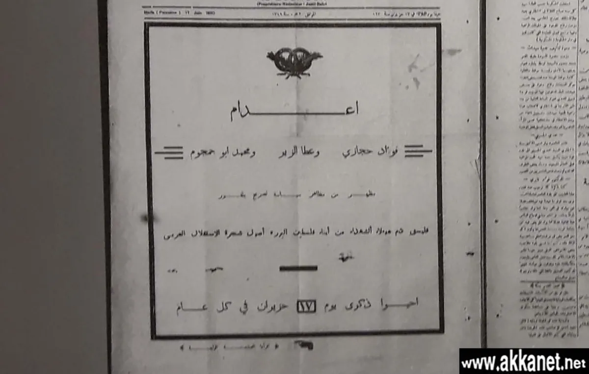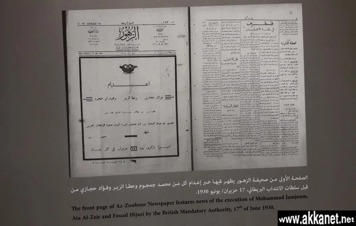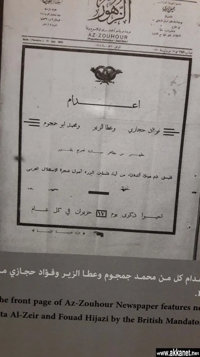 عكا… اعلان عن اعدام فؤاد حجازي، عطا الزير ومحمد جمجمو في سجن القلعة عام 1930