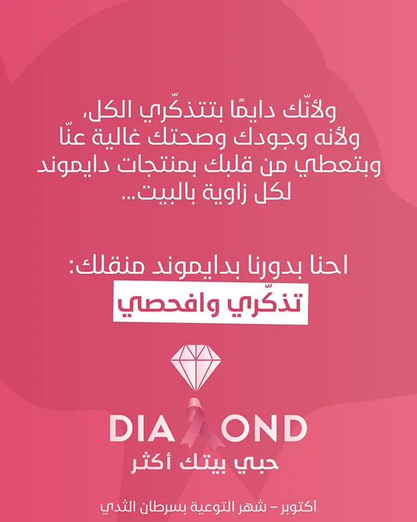 #تذكّري_وافحصي #دايموند #شهر_التوعية #حب_بيتك_أكتر