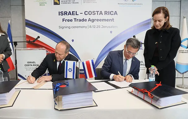 إسرائيل وكوستاريكا توقعان اليوم اتفاق منطقة تجارة حرّة – خطوة اقتصادية مهمة ستُعزّز الصادرات الإسرائيلية، وتوسّع التعاون الدولي، وتُسهم في خفض غلاء المعيشة