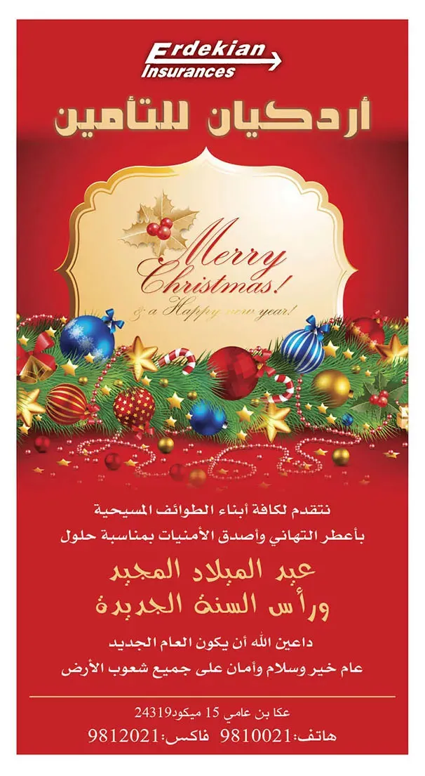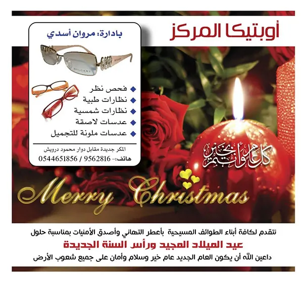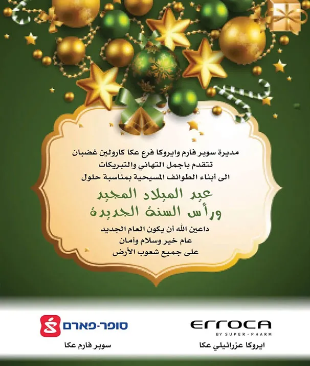 عكا: المحلات التجارية والمؤسسات يهنئون بمناسبة حلول عيد الميلاد المجيد ورأس السنة الميلادية