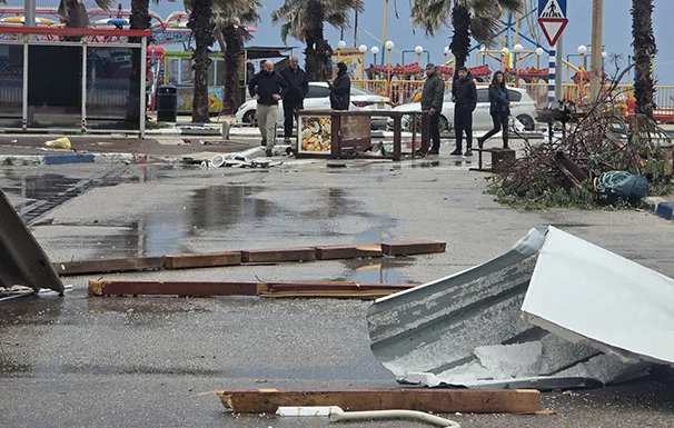 علم مراسل عكانت ان العاصفة ضربت صباح اليوم عدة احياء مقابل الشواطئ الغربية للمدينة مما ادي الى انهيار جدران وتطاير الاثاث وسقوط الاشجار والحمد الله لم تقع اصابات بشرية.