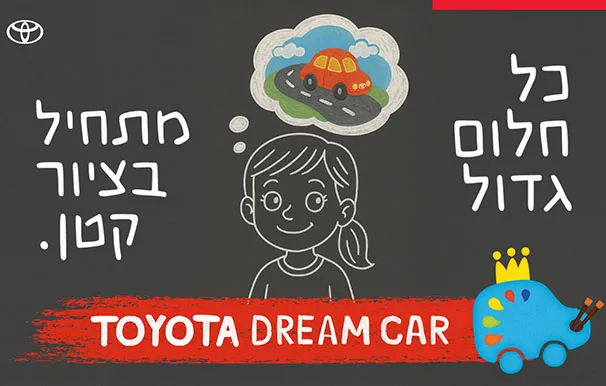 تُطلق يونيون موتورز ، المستوردة الرسمية ل تويوتا في إسرائيل، مسابقة الرسومات العالمية Toyota Dream Car وهي مسابقة سنوية تُقام هذا العام للسنة الـ19 على التوالي، وتدعو الأطفال واليافعين من مختلف أنحاء البلاد إلى رسم سيارة أحلامهم، وكيف يمكن لها أن تُغيّر الطريقة التي نتحرّك بها في العالم.