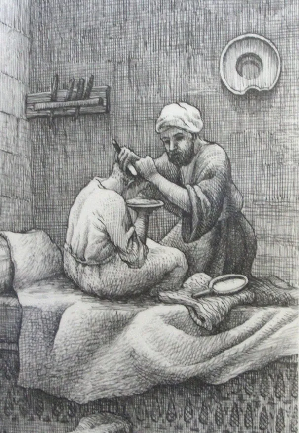 عكا… رسمة لحلاق في حمام الباشا قديما