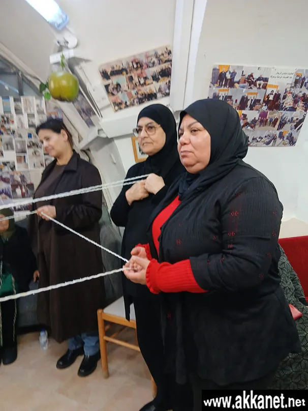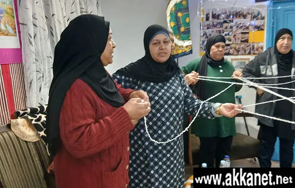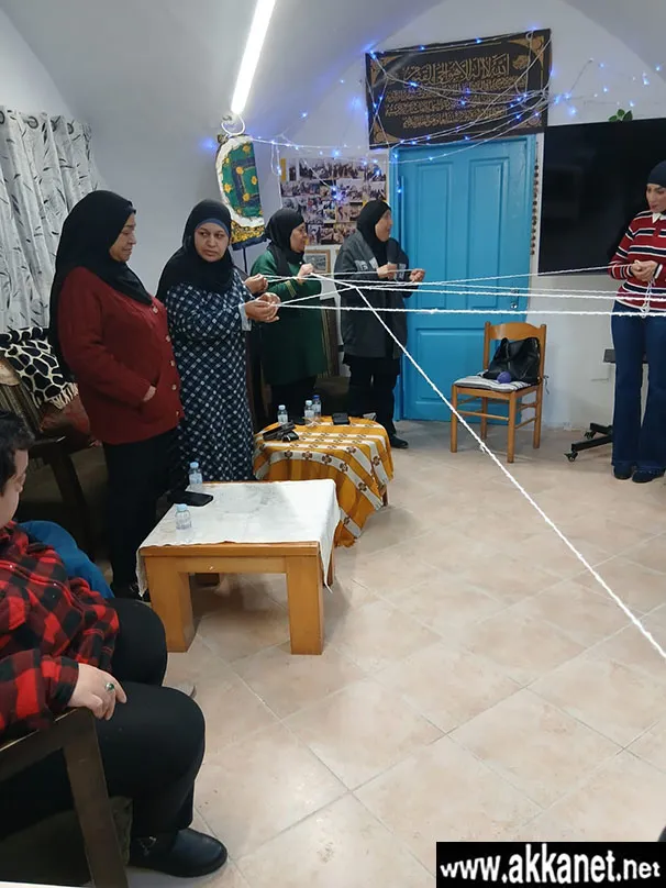 في لقاء مميز استضاف منتدى النساء في عكا القديمة الخبيرة النفسية السيدة عدلة هاني حيث شاركن في فعاليات “شبكة الخيطان” كنشاط اجتماعي تفاعلي لتعزيز التعارف والانتماء وكسر الجليد بين المشاركات حيث تمسك كل واحدة بطرف الخيط بعد التعرف عن نفسها لتكون في النهاية شبكة تربط الجميع كرمز للتواصل والوحدة والى ان كل فرد جزء من المجموعة وتأثير الفرد على الاخرين.