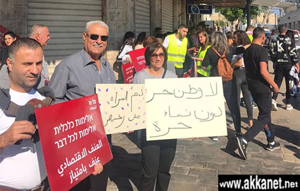 عكا: علم مراسل عكانت ان وقفه احتجاجيه ضد جرائم العنف بحق النساء اقيمت بعد ظهر اليوم في شارع الجزار بمدينة عكا القديمه بدعوة من الحزب الشوعي، الجبهة في عكا والشبيبه الشيوعيه.