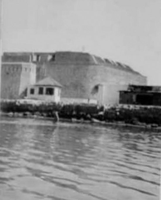 عكا… صوره قديمه لشاطئ العرب وبرج كابو الذي يحمي بوابة البر
