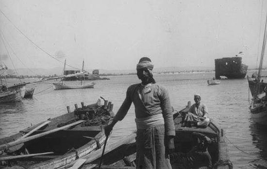 عكا… صيادين في قوارب الصيد الخشبيه الراسيه في ميناء عيسى العوام