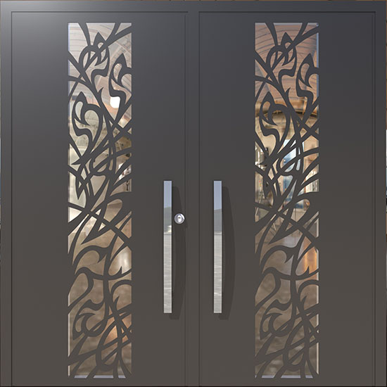 أبواب المدخل على طراز فن الآرت نوفو مناسبة لكل منزل ، من المنازل والشقق الخاصة. كانت الأبواب مستوحاة من طراز فن الآرت نوفو ذي الطراز الأوروبي وسرعان ما تبعها المصممون والمهندسون المعماريون في جميع أنحاء العالم. الباب الأمامي مزين بزخرفة ألمنيوم بخطوط حرة وتدفق طبيعي (مصنوع بواسطة القطع بالليزر). المنور الزجاجي ثنائي الاتجاه مع النمط المزخرف المنعكس على الجزء الداخلي للمنزل. باب ارت نوفو هو جزء من اتجاه للأبواب الأمامية ومصمم بروح التيارات الفنية البارزة.