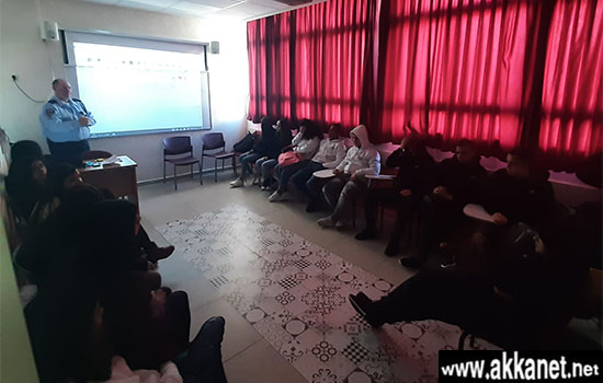بالتنسيق بين مُركزة التربية الاجتماعية سها رباعي طحاينة وبين مركز الشرطة الجماهيرية تم استضافة الشرطي عاموس ليفران – עמוס לברן للقاء خاص مع الطلاب، تخلله محاضرة توعوية حول التعامل السّليم في الابحار عبر عالم الانترنت وكيفية تفادي الخطأ أو الوقوع في فخ الأشخاص المُسبّبين للأذى.