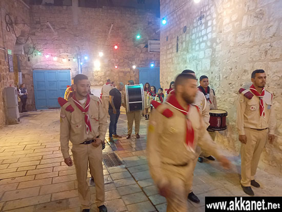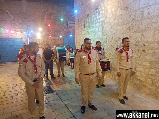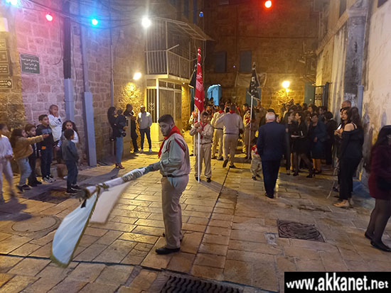 وقد طاف المصلين وراء الأب فيلوتيوس ثلاث مرات حول الكنيسة برفقة الكشاف الأورثوذكسي عكا الذين قرعوا الطبول بصوت حزين تعبيرا عن وفاة المسيح.