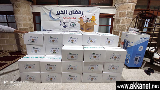 “على موعد جديد لتوزيع مئتي طرد غذائي ستوزع خلال الايام القادمة مع توزيع اموال الزكاة والصدقة على العائلات العكيّة المتعففة . ليصبح مجموع الطرود في شهر رمضان 400 طرد بقيمة مئتي شاقل للطرد الواحد .