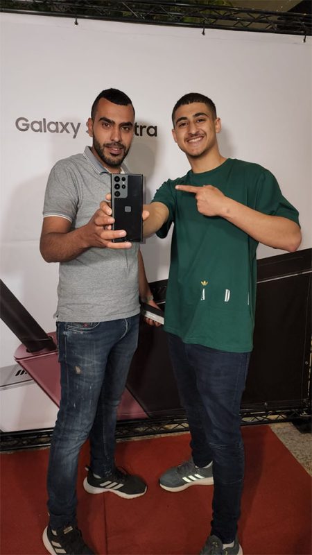 فاز 6 أشخاص سعداء بهواتف samsung s 22 ultra وذلك في اعقاب مشاركتهم في فعالية لشركة سامسونغ في 5 أماكن مختلفة وهي مدينة ام الفحم، مدينة سخنين، قرية دير الأسد ومدينتا الطيرة والناصرة.
