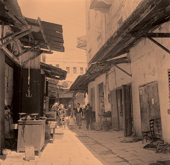 Mahmuood Ashkar من اليسار ملحمة زيا الاراني ومطعم سمعان ومن اليمين دكان بن يامين ومطعم النابلسي وابو خليل وابو جريس وابو حسين الامركاني