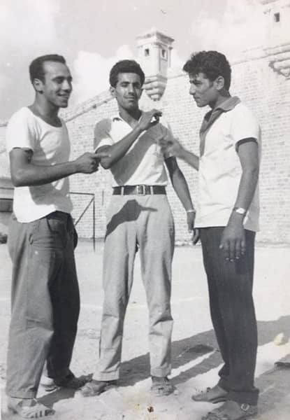 عكا… ملعب كرة القدم بجانب السور الشرقي قديما (هل تعرفون الشباب؟) من اليمين: ؟؟؟؟؟؟؟، أبو عصام الجمل وأحمد فقيه (أبو وسيم) صححونا اذا اخطأنا…