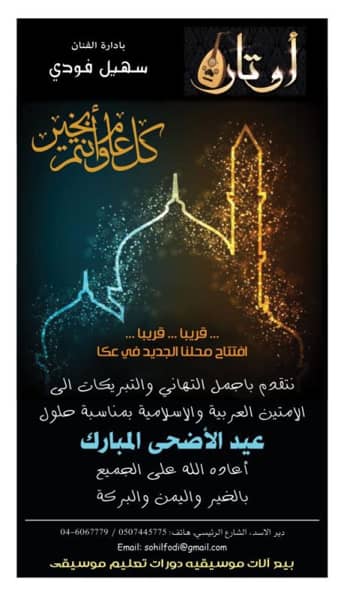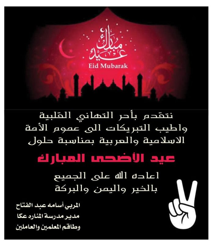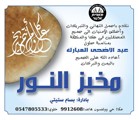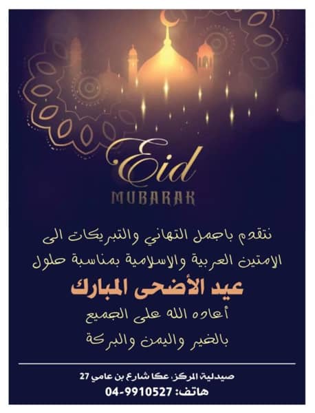 عكا… المؤسسات، المصالح والمحلات التجاريه في عكا والمنطقه يهنئون بعيد الاضحى المبارك