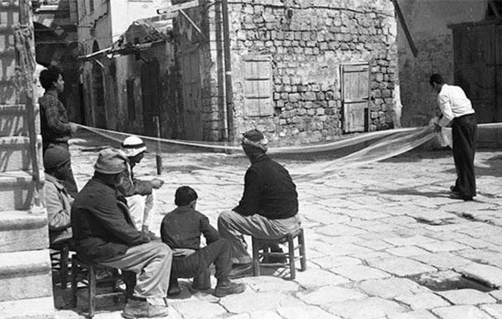 عكا… صيادين يحيكون الشباك في ساحة الجرينه بجانب الميناء