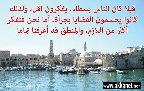 قبلا كان الناس بسطاء، يفكرون أقل، ولذلك كانوا يحسمون القضايا بجرأة، أما نحن فنفكر أكثر من اللازم، والمنطق قد أغرقنا تماما