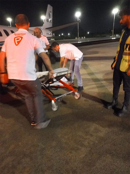 حيث وصلت طيارة الإنقاذ الى إسرائيل صباح اليوم، وعند وصولها نقلت المصابة إلى مستشفى هداسا عين كارم لتلقي العلاج.