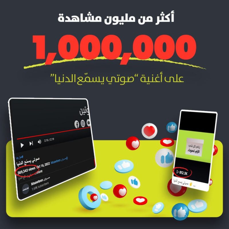 أكثر من مليون مشاهدة خلال ٣ أيام لأغنية “صوتي يسمّع الدنيا”