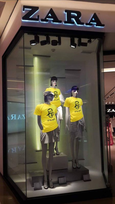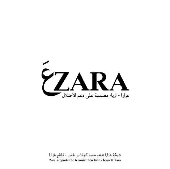 واجتاحت وسائل التواصل الاجتماعي صور معبرة لمقاطعة زارا تحت عنوان:” جعل لا حدا ZARA” و “عZARA عزارا ازياء مصممة على دعم الاحتلال”