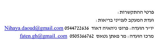 مرفق رسالة لجنة المتابعة (بالعبريّة).
