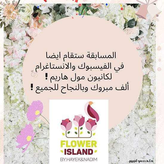 .الفائزون سيحصلون على كرت ديجتال – يمكن استعماله لمدة 3 اشهر من يوم الفوز – يجب الحجز مسبقا التاريخ والساعة من قبل المحل Flower Island – هاتف رقم: 04-6070808.
