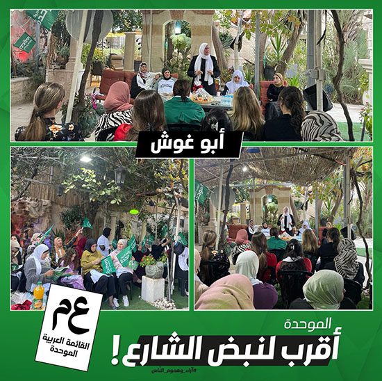 حلقة انتخابية نسائية واسعة دعمًا وتأييدًا للموحدة ونهجها الأقرب لنبض الشارع، في أبو غوش بمشاركة النائبة إيمان خطيب ياسين.