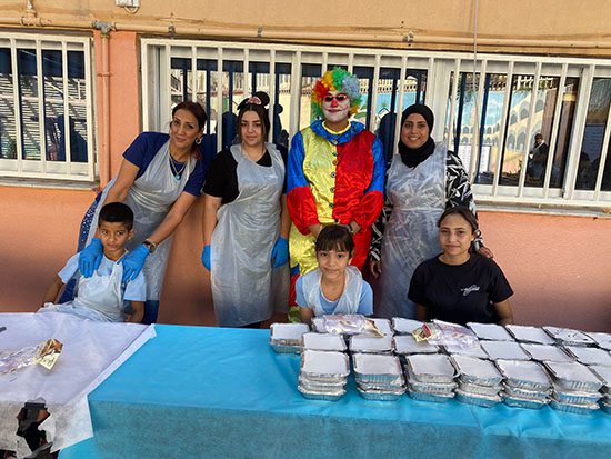 اشتَرك جَميع طاقَمنا المُميّز بالتّبرُّع بكُلّ مايَحتاجه البازار وَعملَ إلى جانِب طلابنا الرّائعين عَلى تَحضير الوَجبات الصّحيّة الطازَجة المُختلفة وَبَيعها مُقابل مَبلغ رَمزي لطلاب مَدرسة الأمل الابتدائيّة الذينَ مَدّوا يَد العَون للمُساعدة في تَغليف الوَجبات.