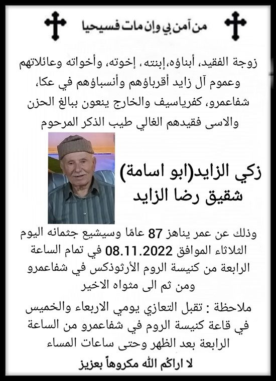 One thought on “عكا… زكي الزايد (ابو اسامه) شقيق رضا الزايد في ذمة الله”