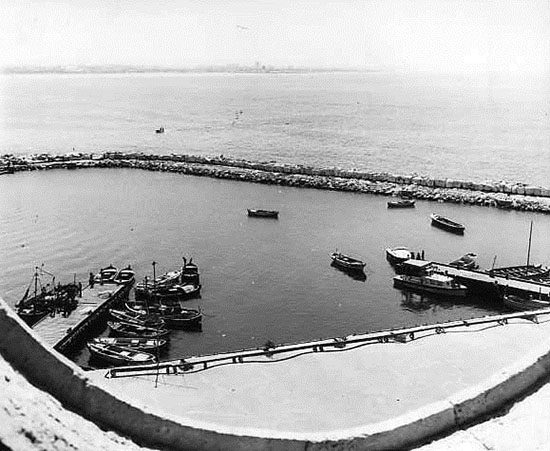 عكا… ميناء عيسى العوام عام 1972 بعد اعمال بناء كاسر الامواج الحالي