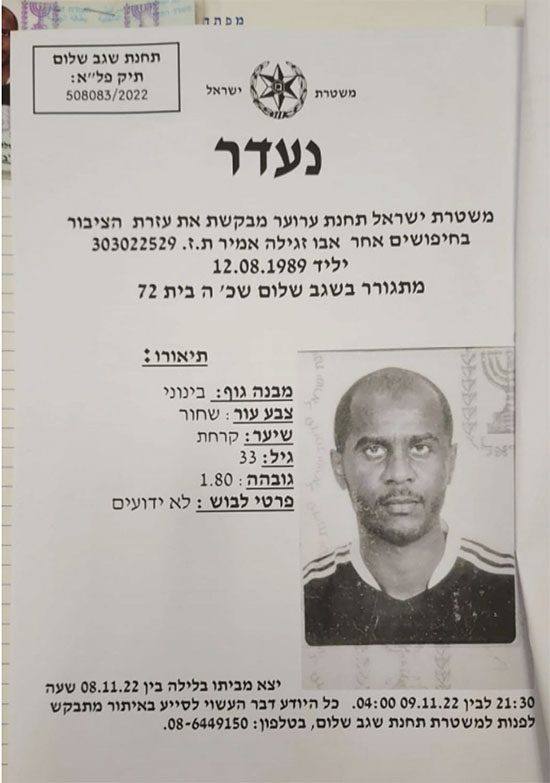 كل من يعرف أية معلومة عنه نرجو الاتصال مباشرة بالشرطة أو بشقيقه إبراهيم: 0548664060