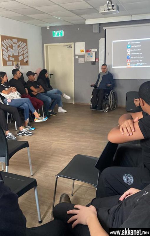 سَرد السّيد رامي قصّتهُ الواقعيّة المُؤثّرة على الطلاب، حيثُ أنّهُ تعرّض لحادثِ طُرق أليم جعلهُ مُقعدًا حتّى يَومِنا هذا.