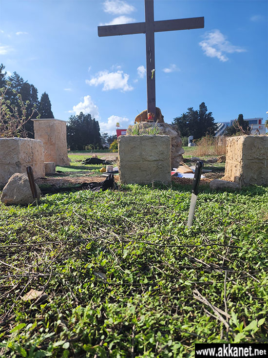 عكا… علم مراسل عكانت انه تم مؤخرا اقتحام ارض المقبره المسيحيه في مدينة عكا شرقي كنيون عزرائيلي وتم طعن الصليب الخشبي بعدة سكاكين، كما وعلى ما يبدو ان مخلفات الاعتداء تدل على اقامة طقوس شعوذه وصلاه خاصة.