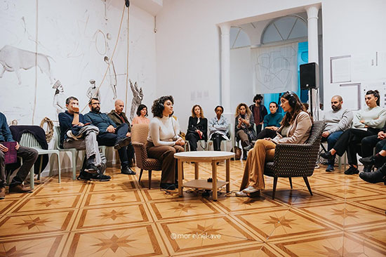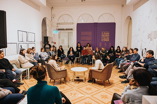 افتتح الأمسية كل من أمجد شبيطة مدير عام مشارك جمعية سيكوي-افق وياعيل ميسر القيمة على المعرض والفنانة يارا محاجنة ومدير بيت الكرمة أساف رون.