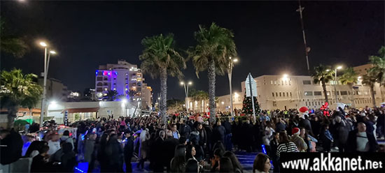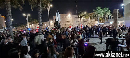 “احتفلت مدينة عكا يوم الخميس، 08.12، بإضاءة شجرة الميلاد، وسط حضور كبير الذي استمتع بالأجواء الميلادية المميزة، من خلال العروض الكشفية لكشاف المنارة والكشاف الأرثوذكسي، بالإضافة الى عروض الأطفال والدمى الميلادية الضخمة، ودمى الليزر، ومع العد التنازلي تمت اضاءة شجرة الميلاد مع عرض مبهر للألعاب النارية.