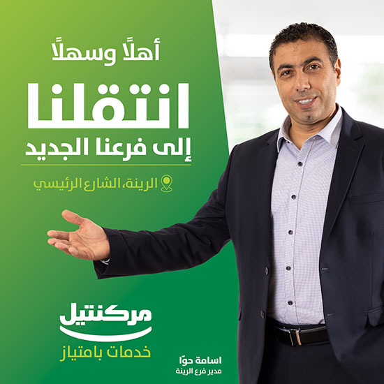 زبائننا الكرام، أنه لفخر لنا أن نعلن عن افتتاح المقرّ الجديد لبنك مركنتيل في قرية الرينة، وذلك يوم الإثنين، الموافق 19.12.22.