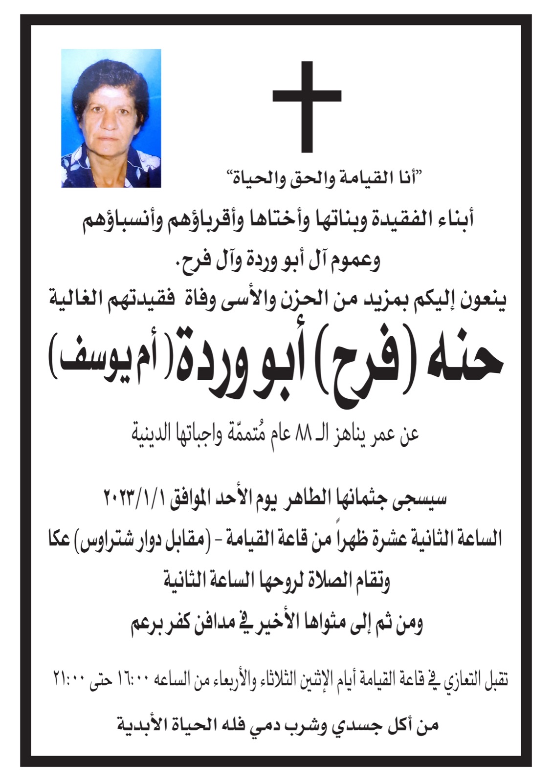 One thought on “عكا… حنه (فرح) ابو ورده (ام يوسف) في ذمة الله”