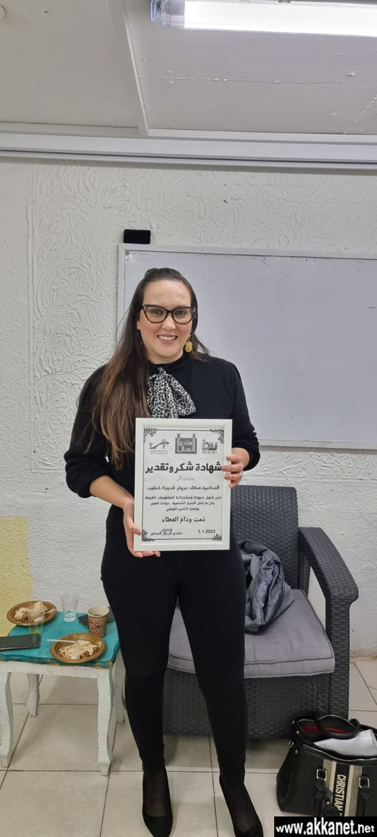 استضاف مؤخرا منتدى الرجال العكي المحامية سعاد مروان قدورة خطيب المتخصصة بقضايا الاضرار الجسدية، حوادث الطرق وكل ما يخص القضايا المتعلقة بالتأمين الوطني .