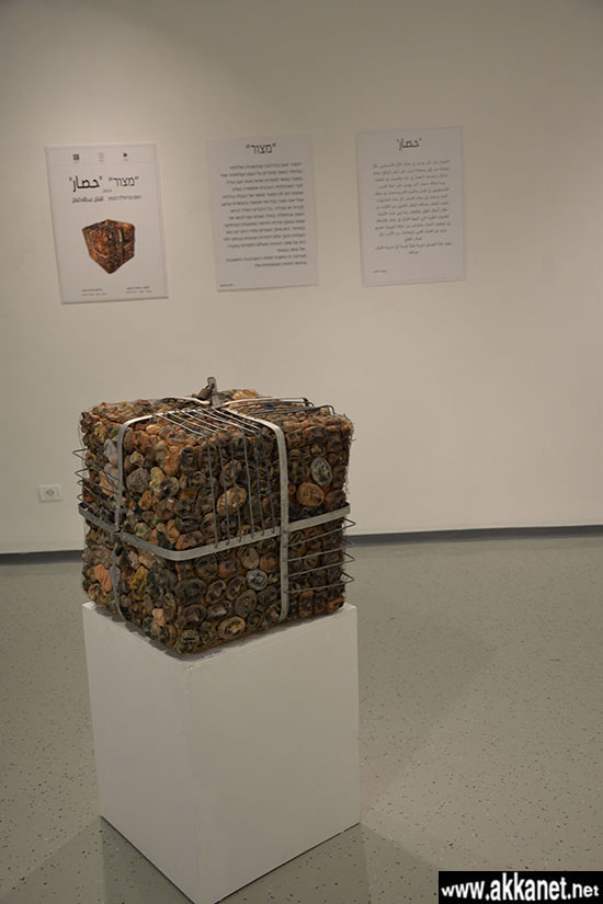 وكل ما نراه في المجسمات من صناديق ,علب , أسلاك ,أقفال حديدية ومسامير هي مدلولات تقودنا لتفسير كلمة ” حصار ” .