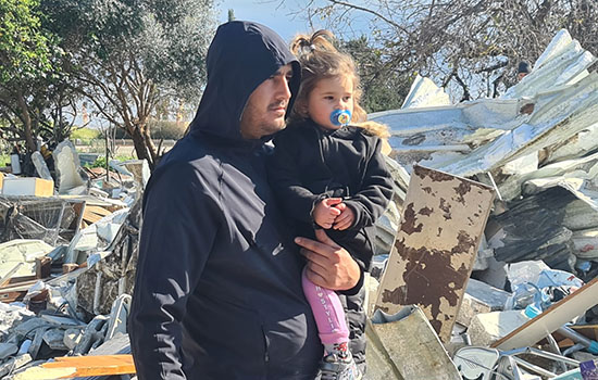 عكا… عائلة ابو عيش تلتحف السماء في البرد القارص بعد هدم منزلهم يوم امس