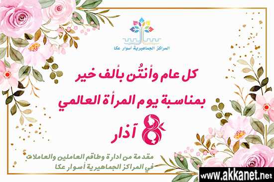 “ضمن فعاليات شهر آذار المرأة والأم، قام طاقم المراكز الجماهيرية أسوار بطاقات تهنئة وشوكولاتة بمناسبة يوم المرأة العالمي، في المدارس، الروضات والأحياء على المعلمات والنساء، حيث قام بمرافقتهم مجموعة الشبيبة التابعة للمراكز.