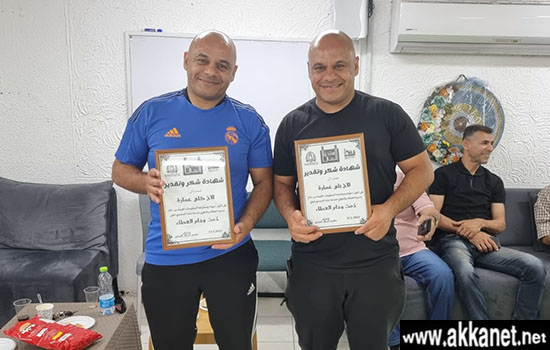 عكا… منتدى الرجال يكرم بلي وكلي عماره على تطوعهم في العديد من البرامج الترفيهية