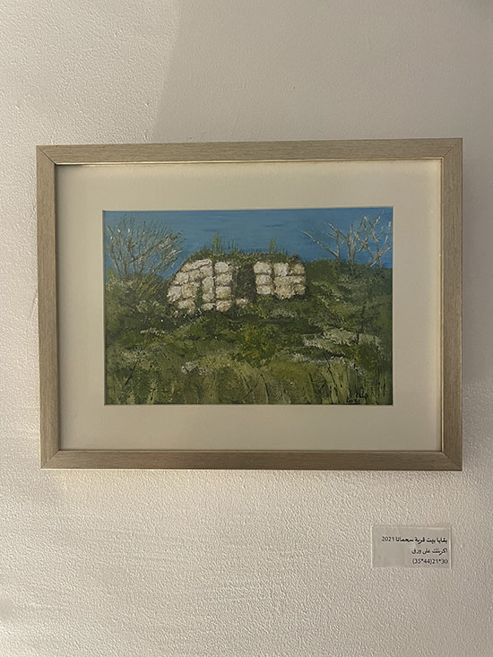 رسمت الفنانة بريشتها المرهفة الإحساس بقايا وطن؛ بقايا قرى مهجّرة، قرية سحماتا، كنيسة قرية إقرث، كنيسة قرية البصّة، قرية صفورية، قرية لفتا وغيرها (حبّذا لو رسمتِ يا جنان بقايا مسجد من مساجد فلسطين).
