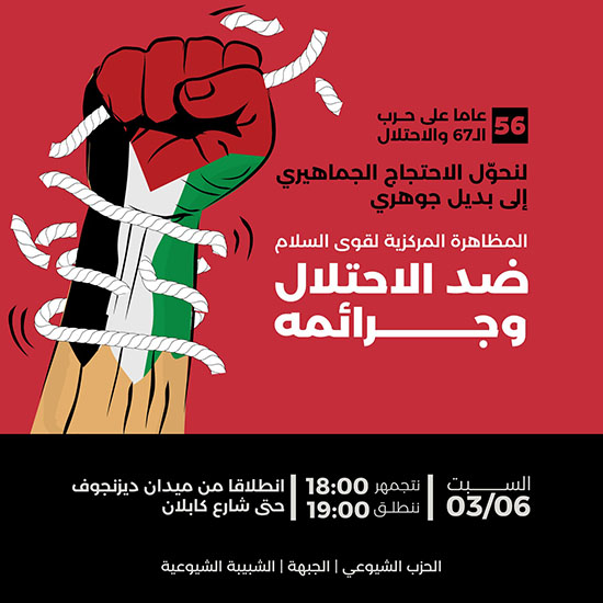 وبحسب البيان من المتوقع أن تكون مشاركة واسعة من كوادر ونشطاء الحزب والجبهة في المظاهرة، إلى جانب النشطاء من المركبات الأخرى فيما بات يعرف بـ “الكتلة ضد الاحتلال”.