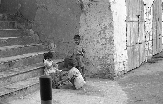 عكا… اطفال يلعبون على درجات جامع الجزار في شارع صلاح الدين قديما